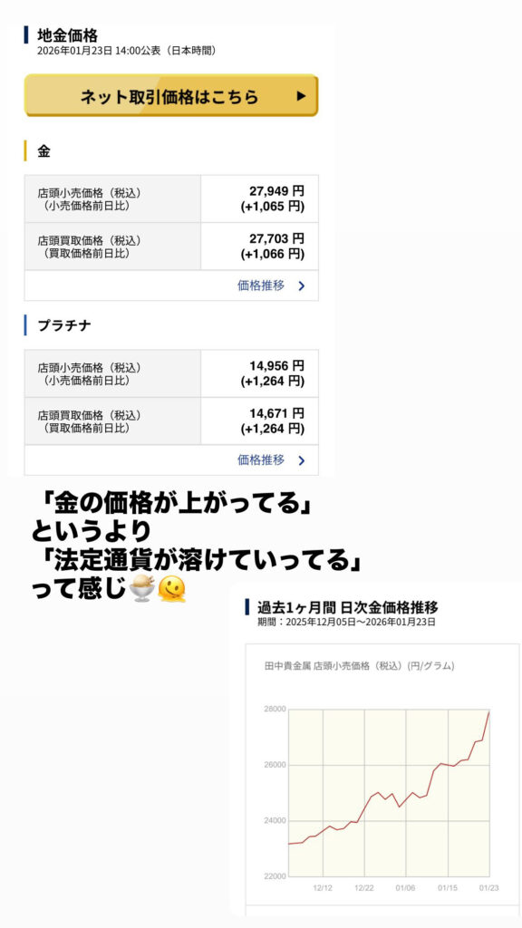 2025年初では1gあたり14,000円ぐらいだったゴールドの価格は、